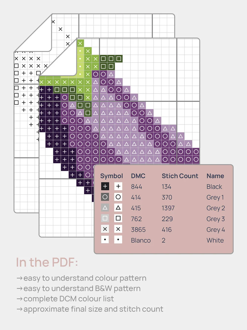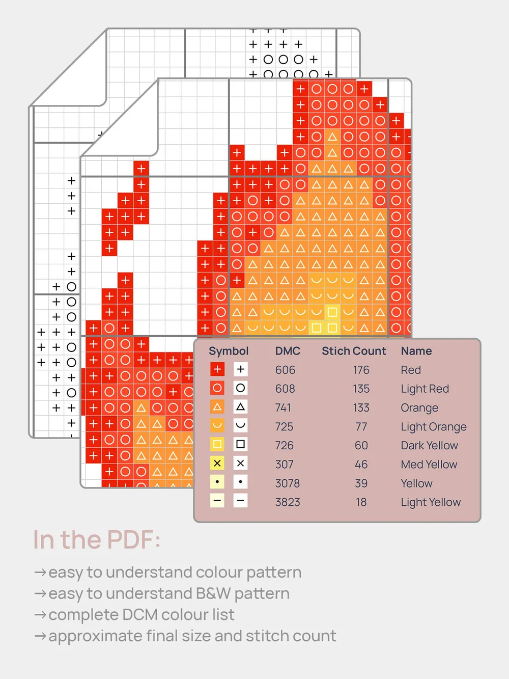 Each download includes a pattern for 51 emoji's, thread colour and number of skiens required.